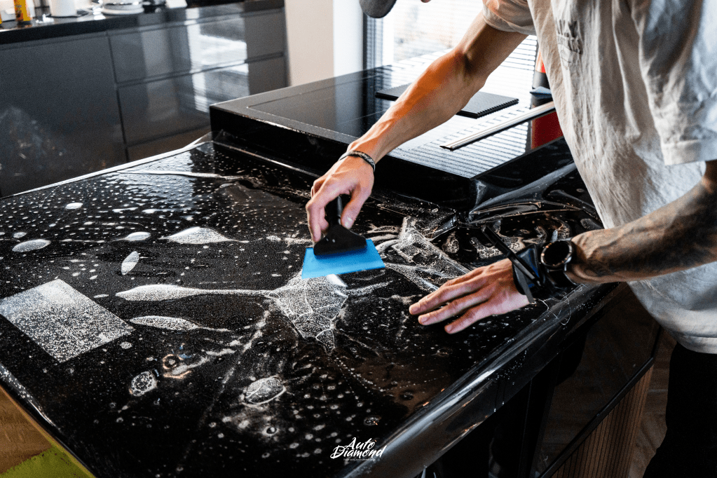 Zabezpieczanie blatów kuchennych i stołów folią PPF